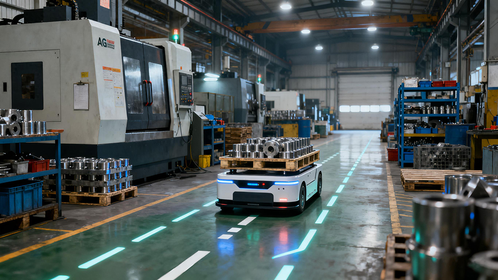 在机械加工车间,物料转运是连接各道工序的"血脉",传统人工搬运却面临效率低、易出错、劳动强度大等痛点。AGV智能搬运机器人的出现,正推动机械加工车间向"无人化转运"升级,实现减人增效与质量提升的双重突破。