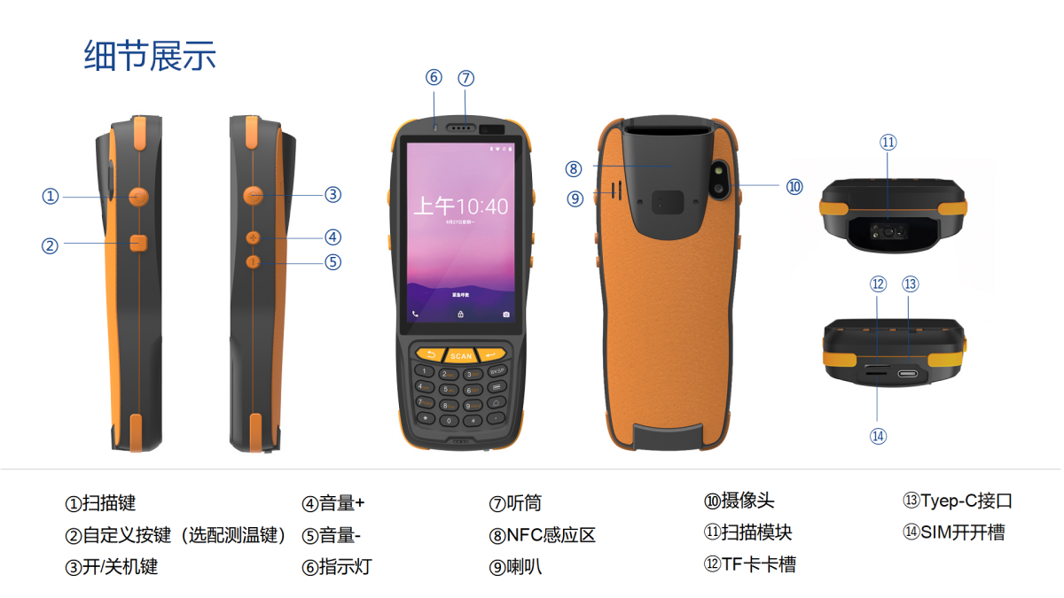 键盘:电源键+音量按键+扫描按键+面板多功能按键
