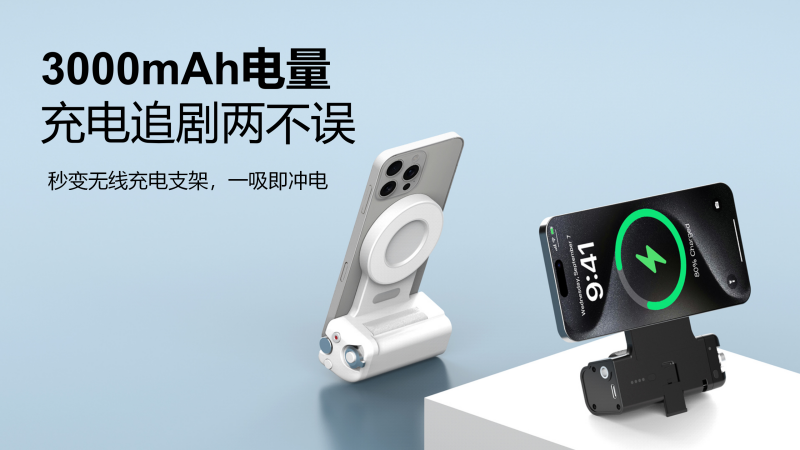 超大电量续航:内置3000mAh电池,不仅能为手柄供电,还能秒变无线充电支架,为手机提供7.5W的无线快充,支持苹果和安卓设备,真正做到充电拍摄两不误。